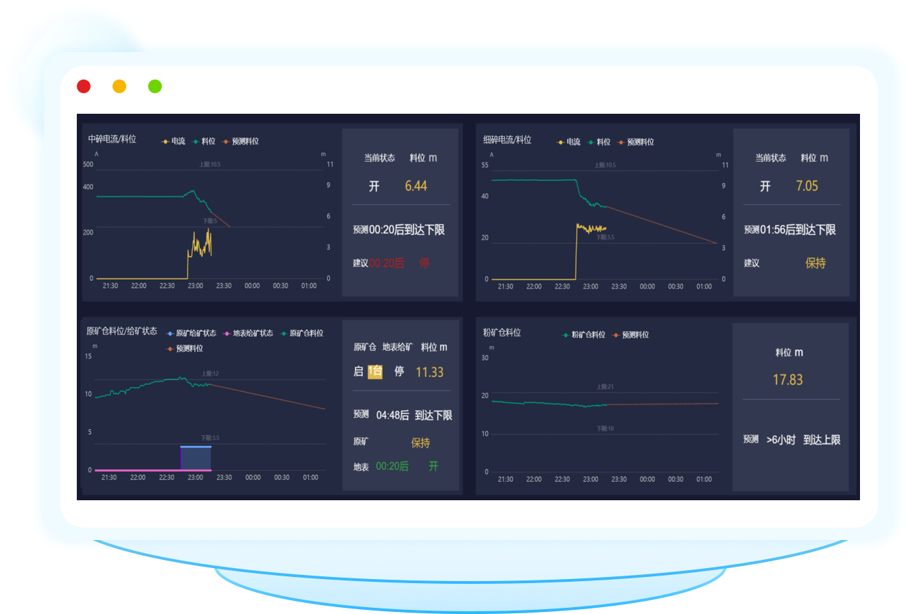 基于原矿仓、粉矿仓料位的实时预测结果,给出中碎、细碎启停操作建议;