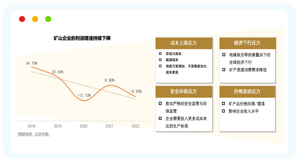矿山企业当前面临多重挑战,迫使企业寻求新的运营方式,提升企业经营绩效。