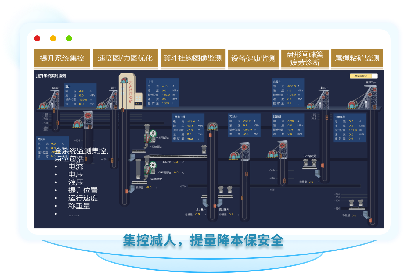 全矿提升系统远程集中控制监控,符合少人化生产要求